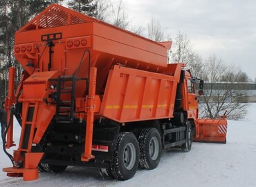 Комбинированная дорожная машина ПС-8, на базе самосвала КамАЗ 65115 предназначена для патрульной очистки от снега дорог и территорий и распределения противогололёдных материалов, а так же для перевозки различных грузов.